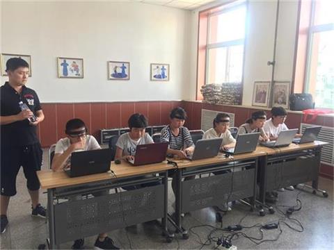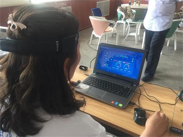 学生们现场在迈思睿认知能力训练与脑电分析系统上进行学习能力测评