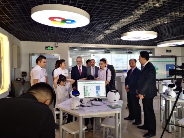 2019年9月中旬,德国课程专家一行参观体验大脑360课堂,就