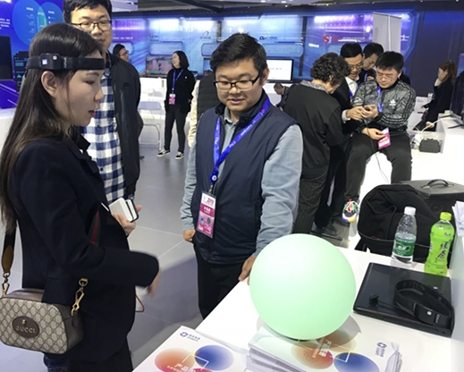 在本次展会上,人工智能技术和中国脑计划引领下的脑科学技术成了观众眼中的亮点,这些展位参观人群络绎不绝,视友科技的脑机接口技术,依然吸引了众多的眼球。随着练正念冥想等关爱亚健康人群越来越多,正念练习爱好者对于是用脑机接口的方法来观测自己练习的程度以及自己的亚健康状态,产生了非常大的兴趣,在视友科技的展位上,很多人现场做冥想,头戴CuBand脑波仪,思语冥想脑波灯则给了他们客观的反馈提示,这种利用脑电生物反馈技术,来时时刻刻展示自己的内心状态和大脑状态,以及帮助进行各种自我自主神经调节放松的技术,已经被越来越多的人接受,现场有不少人提出当场购买,火爆程度可见一斑。
