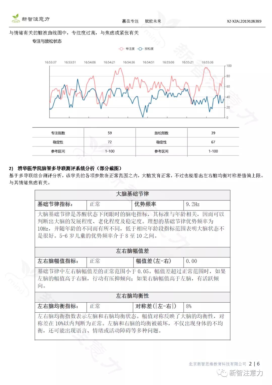 在新智注意力,我们通过脑电生物反馈训练、认知能力迁移强化训练、家庭养育方案三个维度来改善学员的弱项能力。借助安全便携的生物反馈设备,采集学员大脑认知能力相关的生理参数(EEG),与训练项目结合,实施客观、精准地测评,因人而异地1V1训练。在整个训练周期内,心理特教老师也会根据每位学员的特点,借助心理学工具方法等,实施因“脑”施训,快速解决家长们关心的问题;当然,学员的能力的提升与每位家长的坚持与配合是分不开的。下面我们在近期刚毕业的学员档案中摘取一例,供家长们了解新智注意的训练方式。